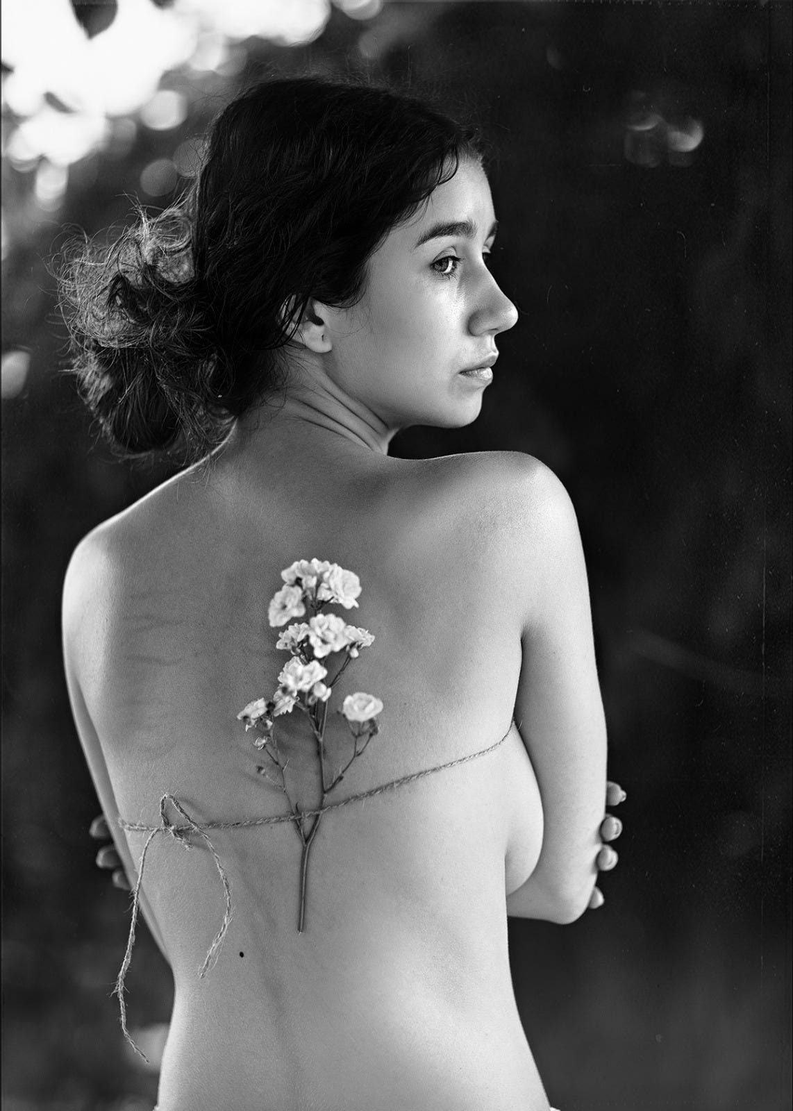 Ca lucrurile să nu alunece într-o direcţie dubioasă, ea nu este sor-mea – ci unul dintre modelele ei, specializată chiar în fotografie de nud. Sânul parţial dezgolit şi ceva din privirea ei m-au fascinat şi mi-au rămas în minte mult după ce fotografia s-a pierdut în arhivă.