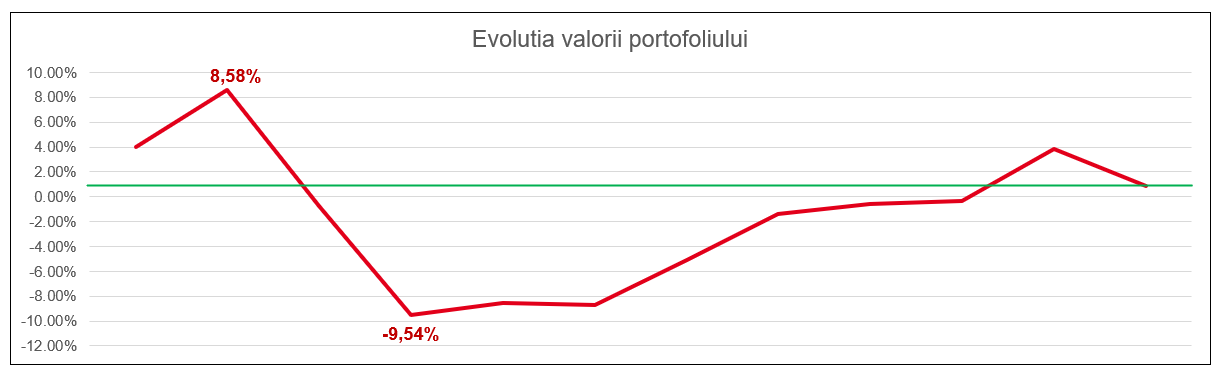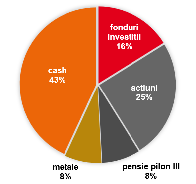 (Adică un sfert din fondul de rezervă pe termen lung. Restul până la 50% au fost plasamente în fonduri de investiţii şi metale, iar cealaltă jumătate economii cash.)O creştere în valoare a portofoliului de ~7%.