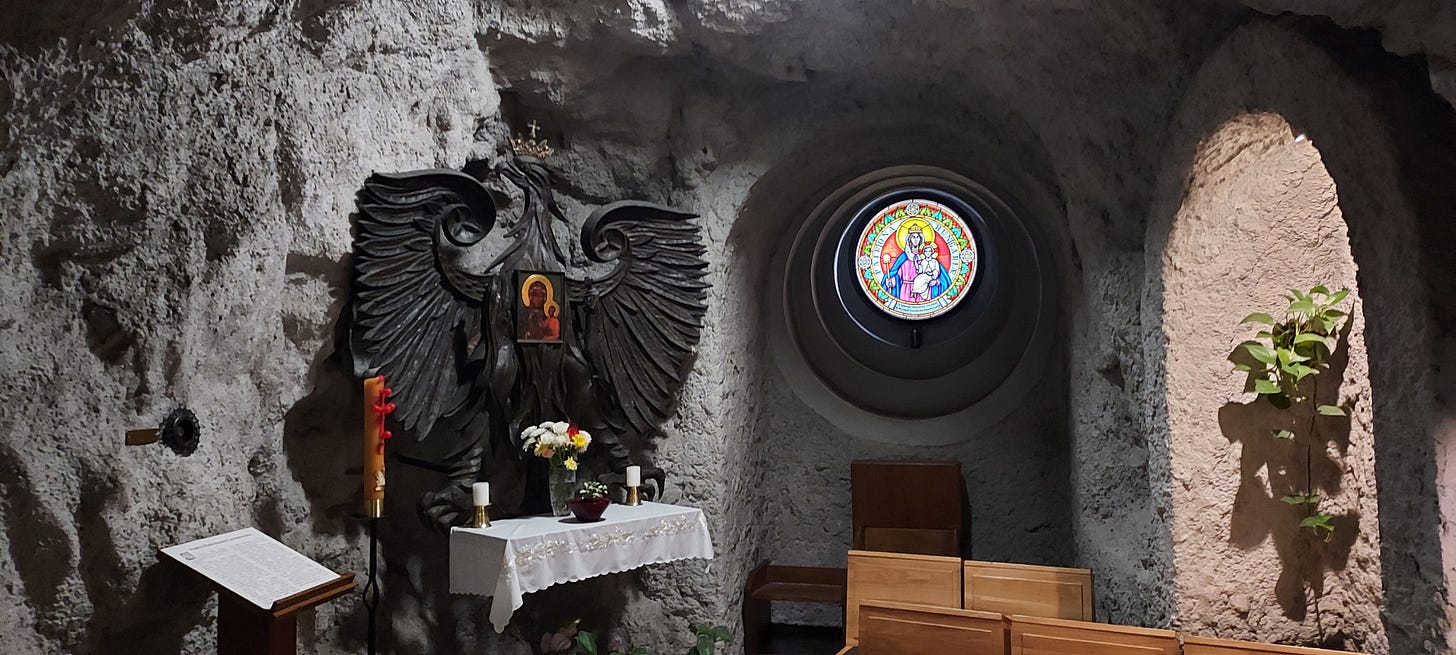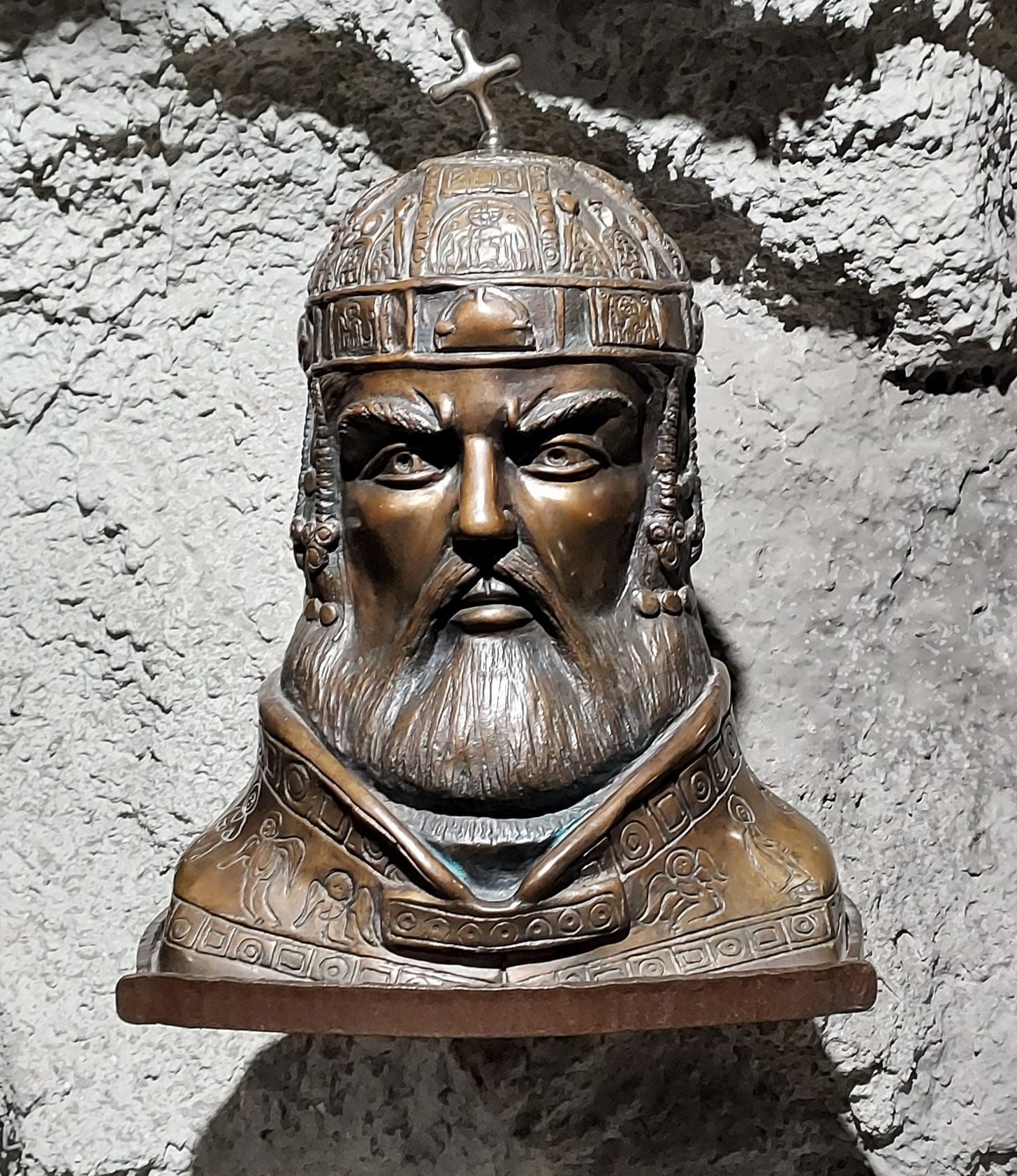 Cel care a invocat protecția Sfintei Maria a fost regele Ștefan I al Ungariei — devenit între timp Sfântul Ștefan. Al lui trebuie să fie bustul din peșteră, însă, indiferent pe cine reprezintă, mie mi-a atras atenția prin crucea strâmbă de pe coif, cel mai nimerit semn că biserica și creștinătatea s-au abătut de la calea cea dreaptă.