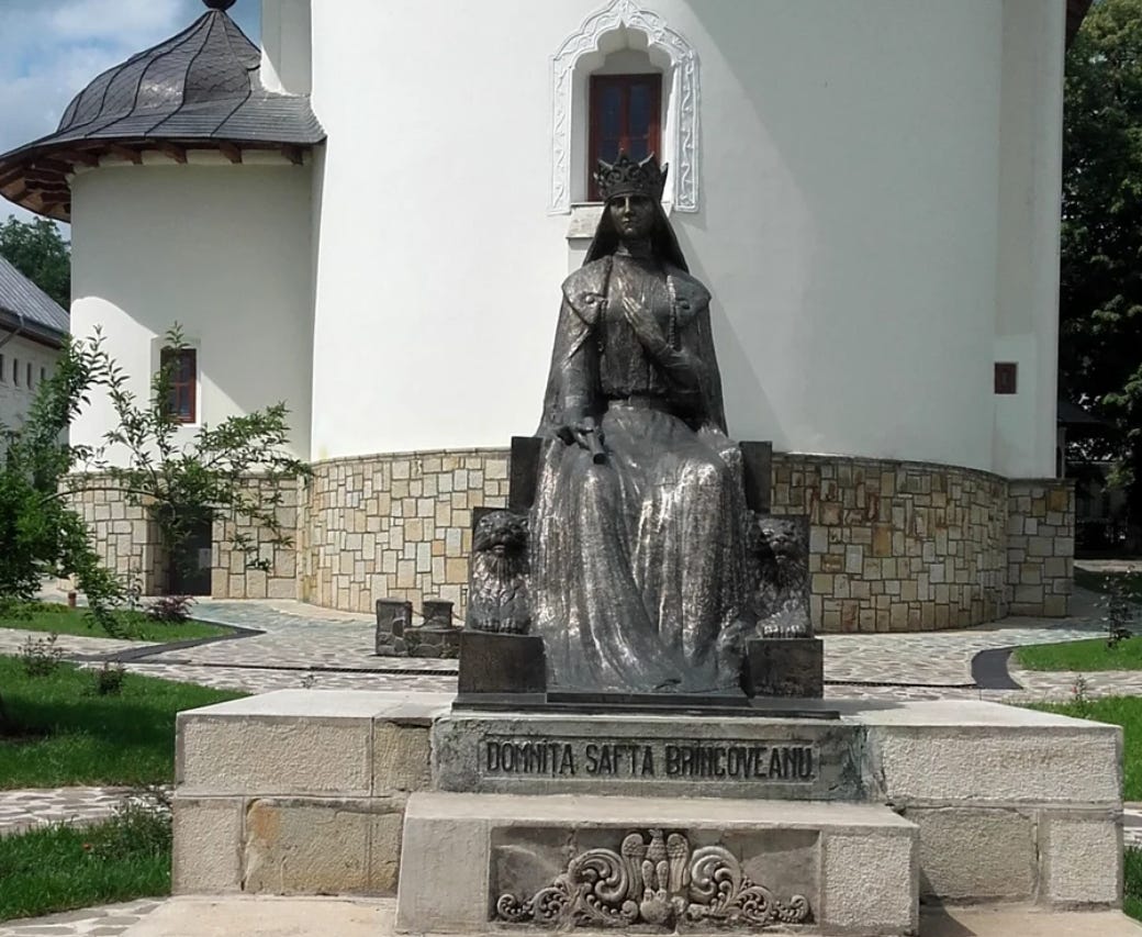 La Văratec, statuia domniţei Safta Brâncoveanu e pângărită de o tablă tristă, care interzice urcatul pe monument… Sculptura în bronz a lui Ion Jalea se găseşte aici din 1935, dar, azi parcă se face altfel remarcată. Citind despre Cleopa şi Paisie, am găsit informaţia că şi domniţa (binefăcătoare a mănăstirii şi altfel filantroapă recunoscută, alături de soţul ei, banul Grigore Brâncoveanu) a fost canonizată – recent, la 1 iulie, cu cinstire în data de 17 august.