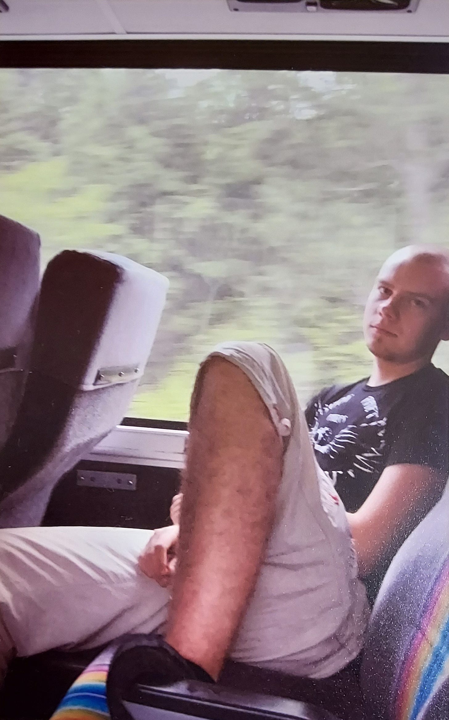 Câteva minute mai târziu, ne găsim locul într-o coadă nu chiar mică. Deşi mai avem aproape o oră până la plecare, iar maşina nici nu a venit la terminal, oamenii şi-au ocupat poziţiile. Călători low-class, tineri cu banii număraţi, două bulgăroaice care merg în Glenn’s Falls (ultima oprire înainte de Plattsburgh; oare s-au chinuit mult ăştia de la Interexchange să ne trimită la mama dracului ca să muncim?) – foarte mulţi negri. Privirea îmi rămâne blocată pe un tip din dreapta mea, un gigant cu fizicul zeilor din vechime. Lângă el, o femeie pe care o ghicesc mama zeului de abanos, într-o rochie verde, cam bizară. At a closer look, îmbrăcămintea este făcută dintr-o perdea (pe tivul fustei se disting nişte găici), iar baticul din cap e o faţă de pernă…