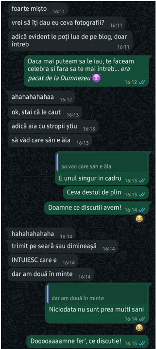 Hmm, probabil că puteam să o întreb direct, că măcar atâta am şi eu – numărul de telefon al sor-mii, dacă în rest aproape că nu ştiu cine e. Dar atunci n-aş mai fi avut motiv să mă laud că sor-mea de pe net e fotografă… Se ştie doar că, în momentul în care te lauzi cu abilităţile altcuiva, ceva din măreţia lui se răsfrânge şi asupra ta.