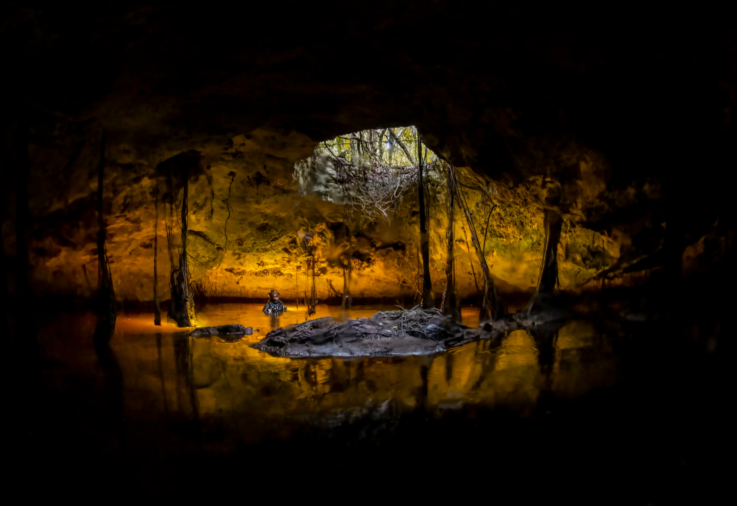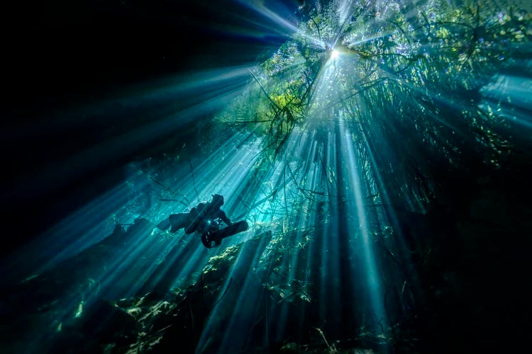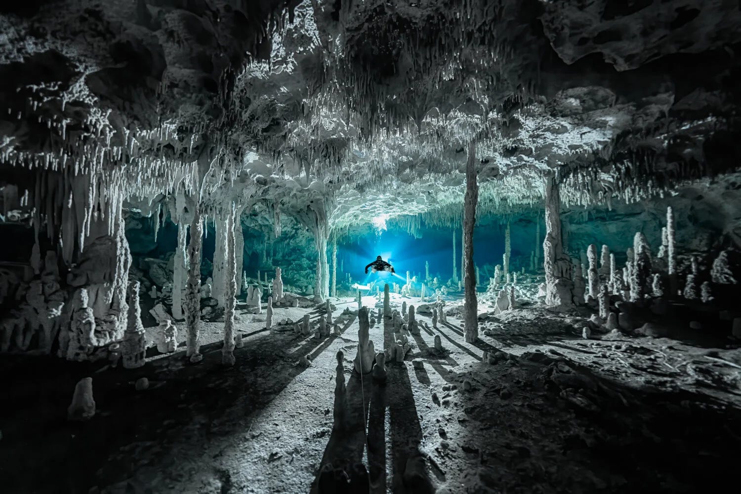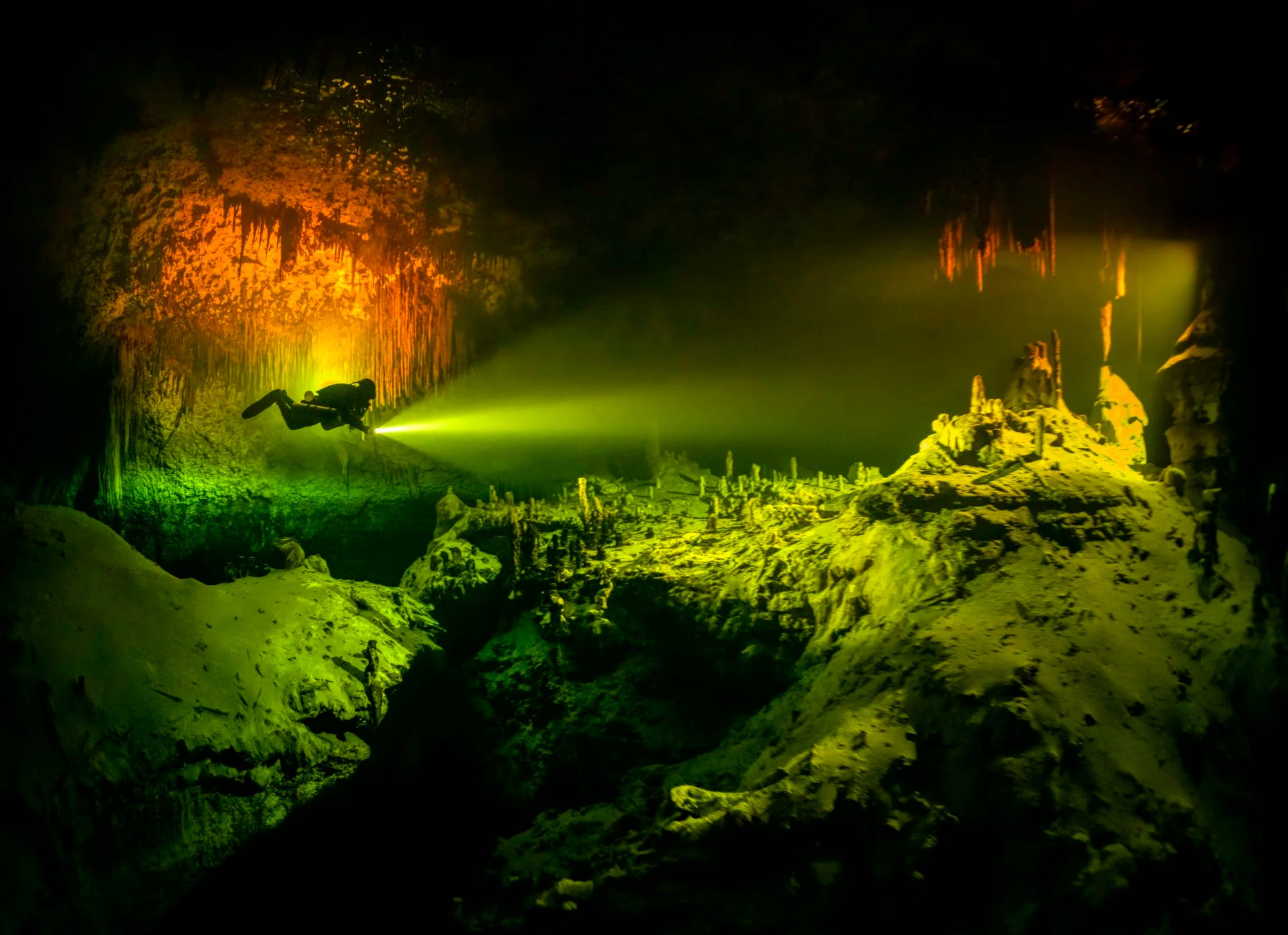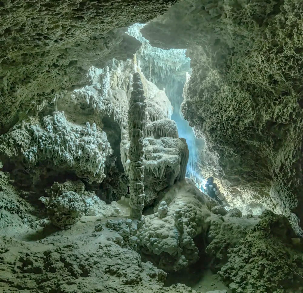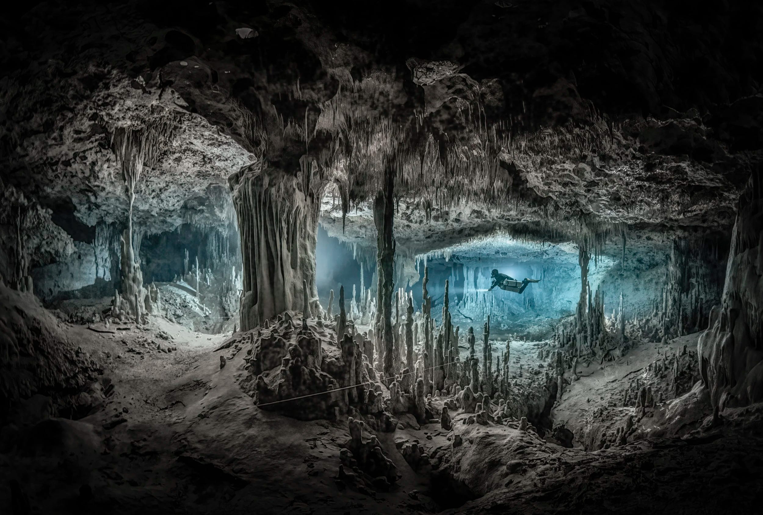 Însă Martin Broen, un fotograf profesionist originar din Argentina, caută minunile din adâncuri: stalactite, stalagmite şi coridoare de întuneric care leagă între ele peşterile inundate – şi pe acestea cu Marea Caraibelor.
