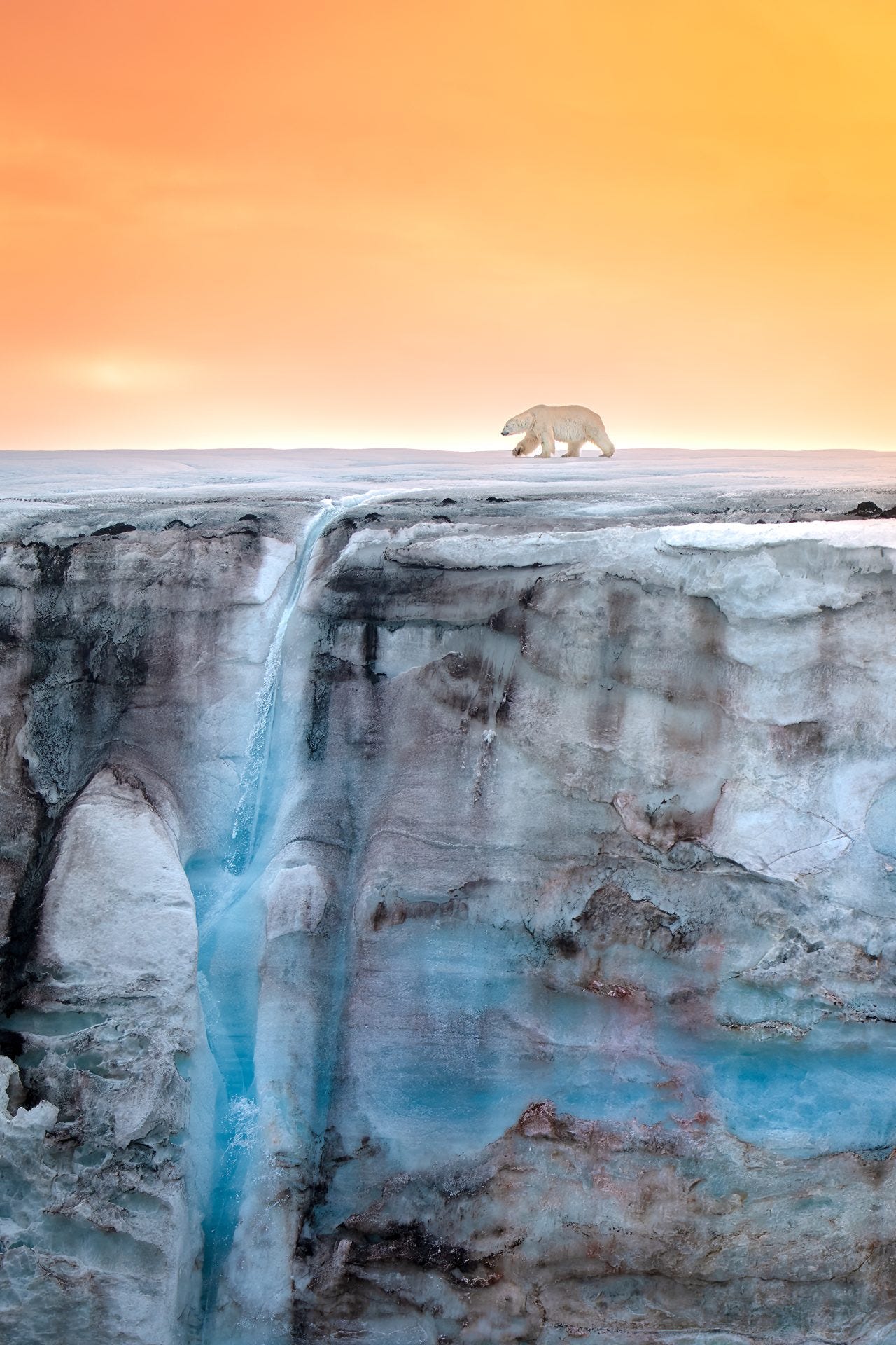 Un urs polar plimbându-se pe un gheţar din Oceanul Arctic.