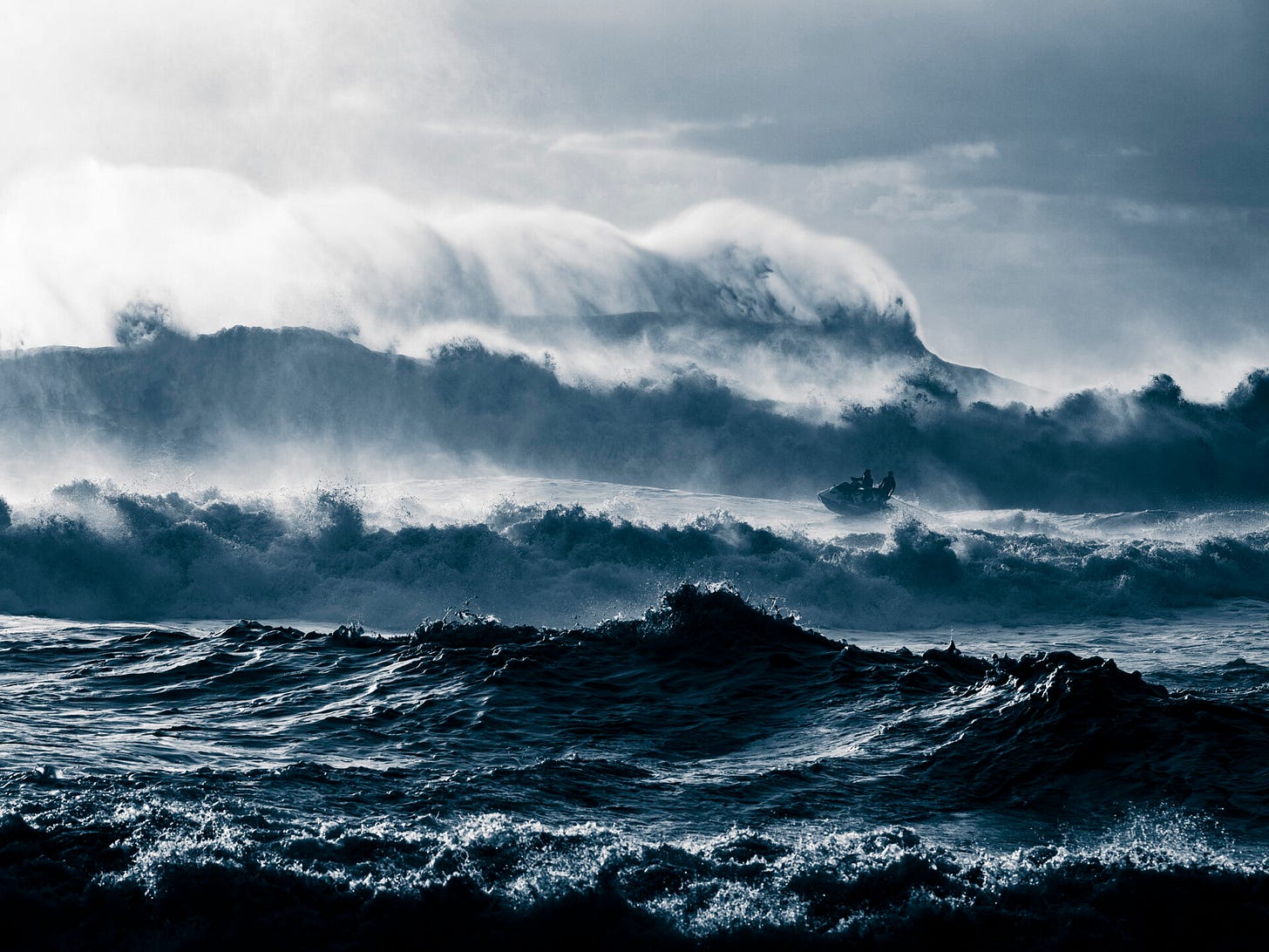 Un jet ski prins în tumultul Oceanului Atlantic în largul coastei portugheze, la Nazaré.