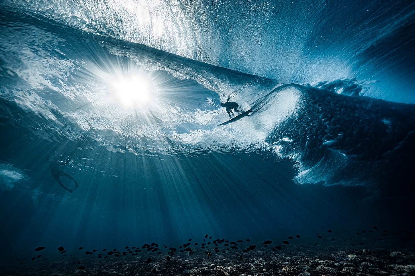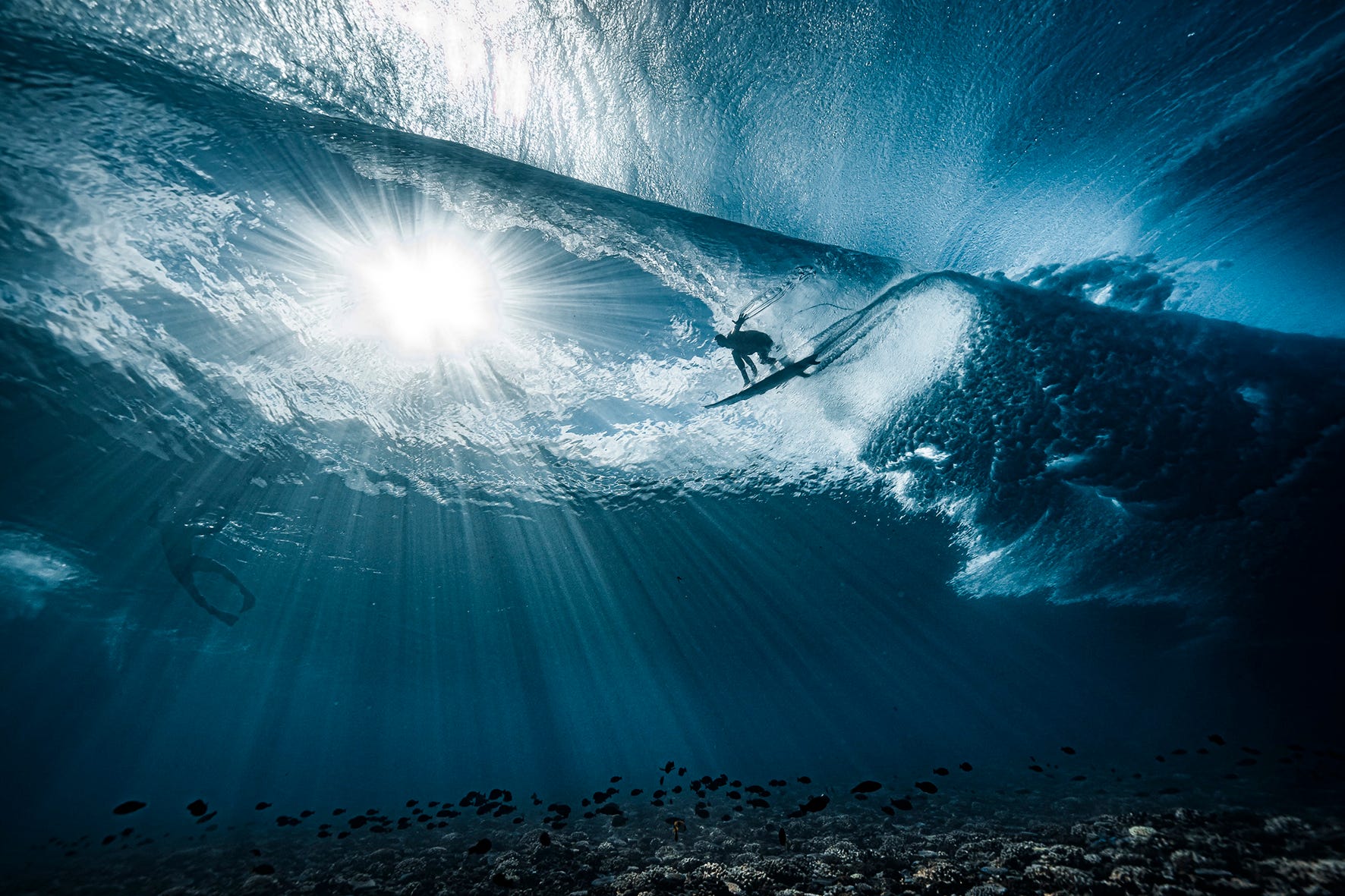 Valul Teahupoo văzut de sub apă. (Ben Thouard, Franţa)